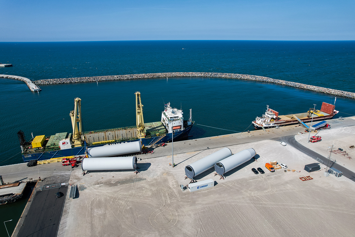 Hanstholm Havn rummer gode betingelser for effektiv håndtering og transport af vindmølledele, hvor store erhvervsområder er dedikeret til opbevaring, samling og pre-assembly af store komponenter.